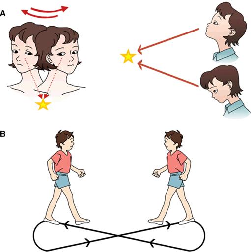 Çocuğun, sabit bir noktaya bakarken başını sağa/sola veya ileri/geri çevirerek gözlerin sabit kalması sağlanır.